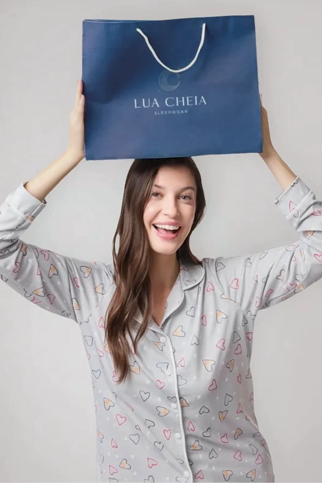 Descubra o conforto e a elegância do Pijama Feminino Lua Cheia Dog Mescla Escuro. Este conjunto, composto por uma camisa de manga longa e calça, é ideal para as noites mais frescas do outono e inverno. Com um fechamento em botões, proporciona um ajuste perfeito e um toque de sofisticação ao seu look de dormir.