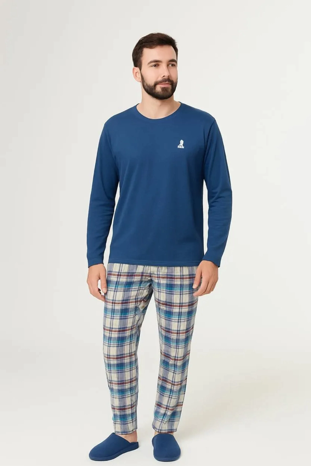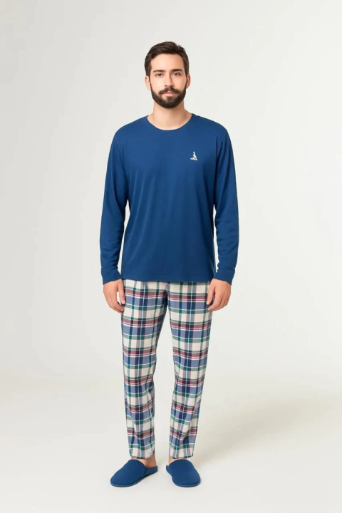 Descubra o conforto e a elegância do Pijama Masc Xadrez Colorido Marinho da marca Lua Cheia. Este conjunto, ideal para as noites mais frias do outono e inverno, é composto por uma camisa de manga longa e uma calça, proporcionando uma experiência de uso aconchegante e estilosa.