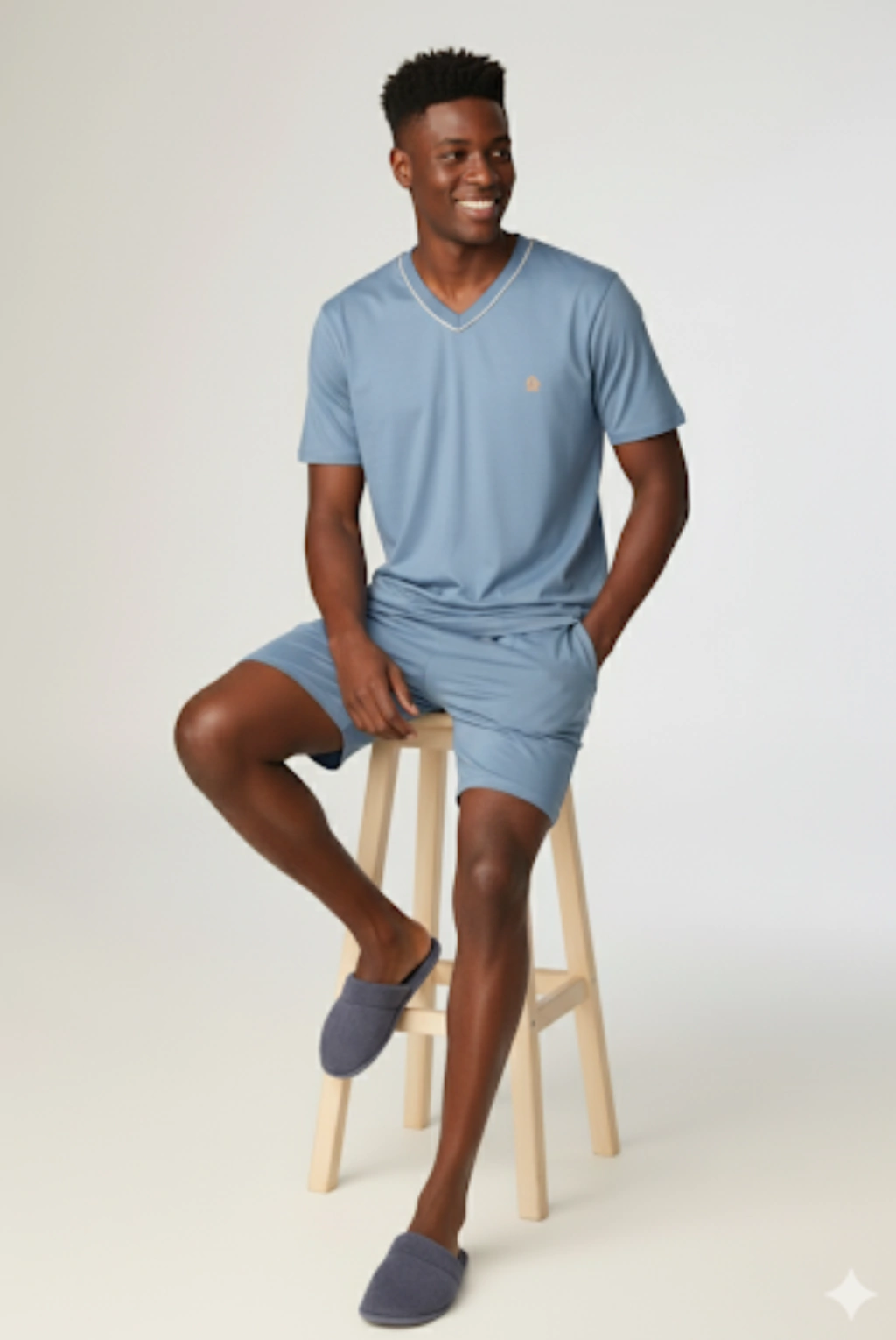 Conforto garantido para todas as noites! Confeccionado em malha 100% algodão, esse pijama oferece frescor, respirabilidade e maciez natural. Com blusa de manga curta, decote V com friso de cor contrastante, bordado na lateral e short, é ideal para quem busca bem-estar e leveza no dia a dia.